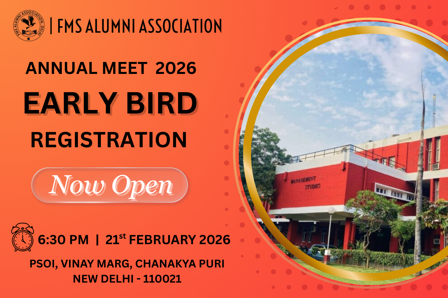 FMSAA came into existence on 6th January, 1998 as a registered body of graduates of all long term programmes of Faculty of Management Studies, University of Delhi, popularly known as FMS, Delhi. It is heartening to note that the Association has completed its two decades of successful contribution to the corporate life of its alma mater...